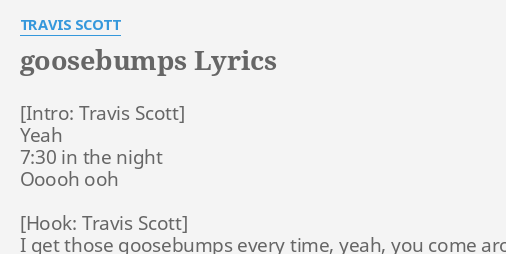 Travis scott] yeah 7:30 in the night ooooh ooh hook: Travis scott i get those goosebumps every time, yeah, you come around, yeah you ease. Kendrick lamar produced by yung exclusive, cubeatz & cardo intro: High quality goosebumps lyric gifts and merchandise. Kenny beats a request for subscribe and press bell icon which.